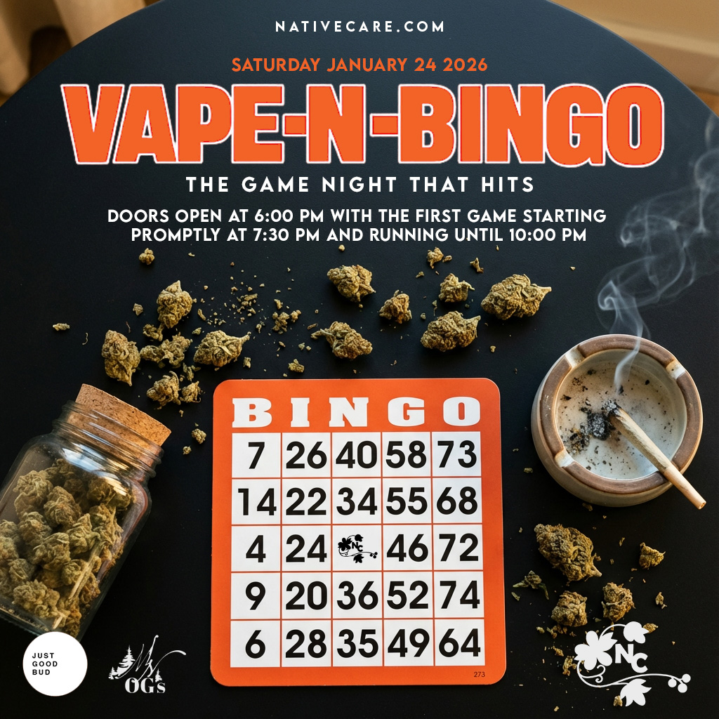 SATURDAY JANUARY 24 2026 VAPE-N-BINGO THE GAME NIGHT THAT HITS - DOORS OPEN AT 6:00 PM WITH THE FIRST GAME STARTING - PROMPTLY AT 7:30 PM AND RUNNING UNTIL 10:00 PM