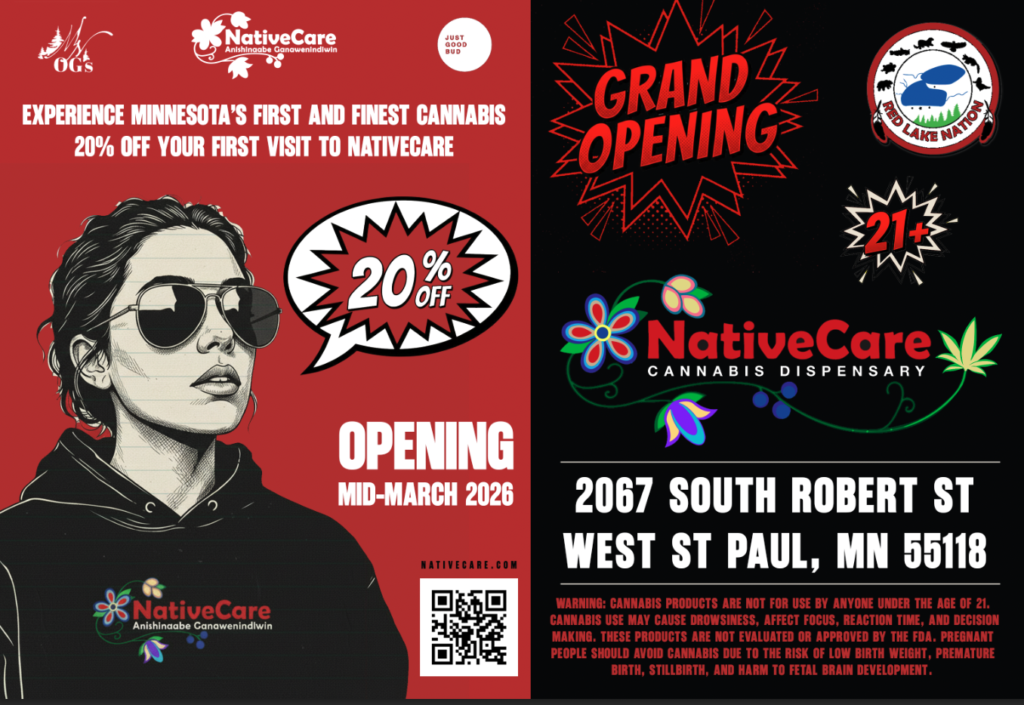 NativeCare is opening soon in West St. Paul—currently targeting a mid-March grand opening. Get ready for amazing Minnesota-grown cannabis, including premium flower, pre-roll joints and blunts, delicious edibles, and more. Follow along for the official opening date, menu sneak peeks, and in-store specials (21+ only).